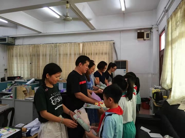 在德育處的組織下,各班的隊干積極參與到這次的教師節(jié)獻花活動,為老師們送去祝福,充分體現了學校的人文情懷!讓這個教師節(jié)過得“簡約而不簡單”。
