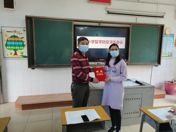 為更好地開(kāi)展返校復(fù)課疫情防控演練,學(xué)校根據(jù)上級(jí)部門(mén)的要求詳細(xì)制定了演練方案,并根據(jù)演練方案準(zhǔn)備好演練物資,于4月14日下午2點(diǎn)召開(kāi)全校員工專(zhuān)題演練安排會(huì)議。會(huì)議開(kāi)始前,劉奧鵬校長(zhǎng)先向全體教師員工介紹了學(xué)校的陳綠清健康衛(wèi)生副校長(zhǎng),并頒發(fā)了聘書(shū)。隨后,劉奧鵬校長(zhǎng)對(duì)演練進(jìn)行了總體安排,提出了明確要求,使每一位參與人員熟悉流程、明確職責(zé),確保每一個(gè)環(huán)節(jié)有序進(jìn)行,為演練的順利開(kāi)展奠定了基礎(chǔ)。