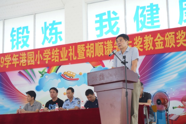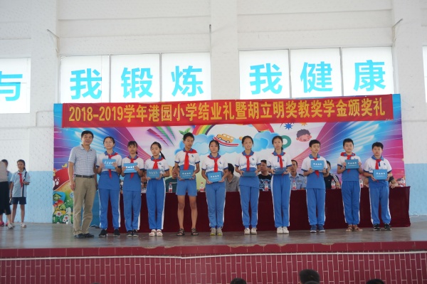 2019年7月5日的上午,港園小學全體師生歡聚學校大禮堂,共同慶祝這學期的散學禮——2018-2019學年結業(yè)禮暨胡順謙先生獎教基金頒獎會。本次頒獎會得到了港園村委的大力支持,港園村黨支部書記、村委主任胡潤安先生,港園村黨支部副書記胡家勉先生,港園村兩委委員胡卓炎先生、黃麗端女士、黃子仲先生,還有港園村熱心人士胡達川先生等出席了本次頒獎典禮。
