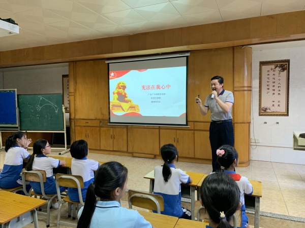 為了弘揚(yáng)憲法精神,增強(qiáng)法治觀念,營造良好的法制氛圍。5月24日下午,沙溪鎮(zhèn)港園小學(xué)邀請了廣東廣中律師事務(wù)所張愛文律師,到校開展以“憲法在我心中”憲法教育大講堂活動。