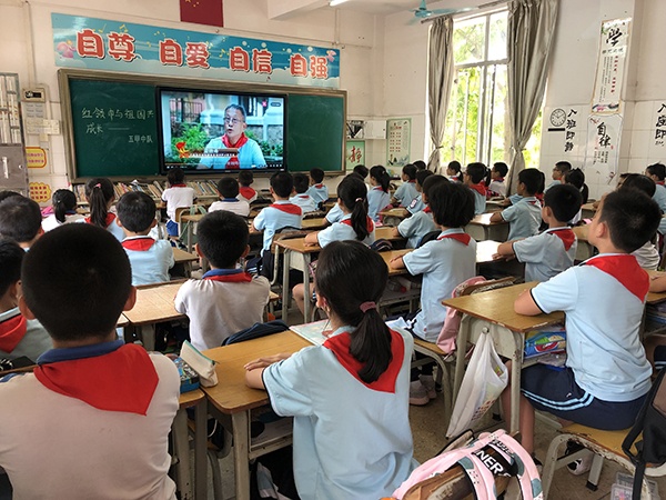 下午,各中隊開展少先隊建隊日主題活動。在活動中,各中隊輔導員首先帶領全體少先隊員重溫入隊時刻;分別從入隊目的、隊旗、隊徽、紅領巾的來歷、隊禮、隊委標志、隊歌、呼號、入隊誓詞等方面進行學習,增強了隊員們對少先隊知識的認識與理解和對紅領巾的崇敬感、使命感。全體隊員收看了《紅領巾與祖國共成長——南粵紅領巾獻禮少先隊建隊70周年節(jié)目》。隨后,各中隊開展“紅領巾與祖國共成長分享會”。讓隊員們分享參加“紅領巾與祖國共成長”的成果和收獲,說一說祖國建設新成就, 談一談身邊生活新變化, 曬一曬參加少先隊活動帶來的成長和進步, 明確下一步打算和目標, 許心愿、立志向, 從我出發(fā), 爭做新時代的好隊員。