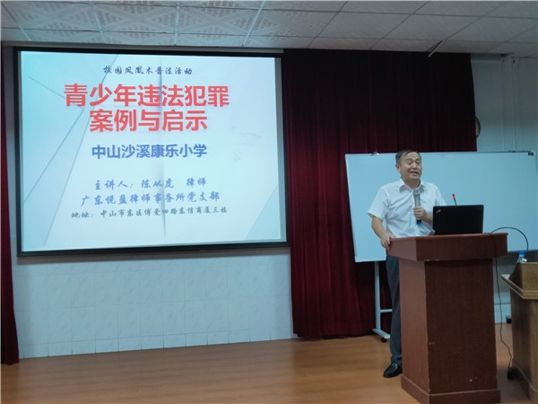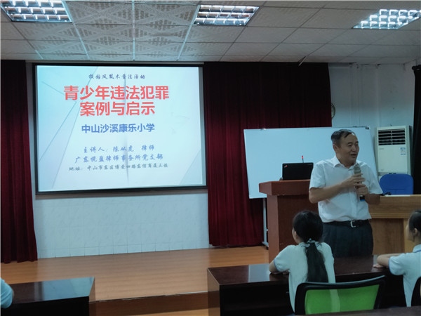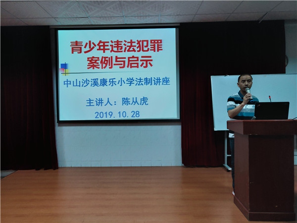 為有效預(yù)防和減少青少年違法犯罪,增強(qiáng)學(xué)生法律觀念,11月7日下午,中山市沙溪鎮(zhèn)康樂小學(xué)在學(xué)校報(bào)告廳舉行法制專題講座,邀請(qǐng)了廣東悅贏律師事務(wù)所知名律師陳從虎主講。講座由康樂小學(xué)德育主任沈光元主持,康樂小學(xué)六年級(jí)的全體師生聆聽了這次講座。