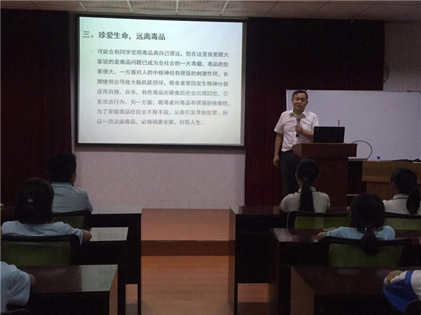 陳律師還嚴(yán)厲地告誡同學(xué)們說:“可能會(huì)有的同學(xué)覺得毒品離自己很遠(yuǎn),但在這里我要跟大家說的是毒品問題已成為全社會(huì)的一大毒瘤,毒品的危害很大,一方面對(duì)人的中樞神經(jīng)有很強(qiáng)的刺激作用,長期使用會(huì)導(dǎo)致大腦機(jī)能損壞,吸食者常因發(fā)生精神分裂癥而自殘、自殺,有些毒品在吸食后還會(huì)出現(xiàn)幻覺,引發(fā)攻擊行為。另一方面,吸毒者對(duì)毒品有很強(qiáng)的依賴性,為了獲取毒品往往會(huì)不擇手段,從而引發(fā)其他犯罪。所以一旦沾染毒品,必將禍害全家,自毀人生?!?/p>