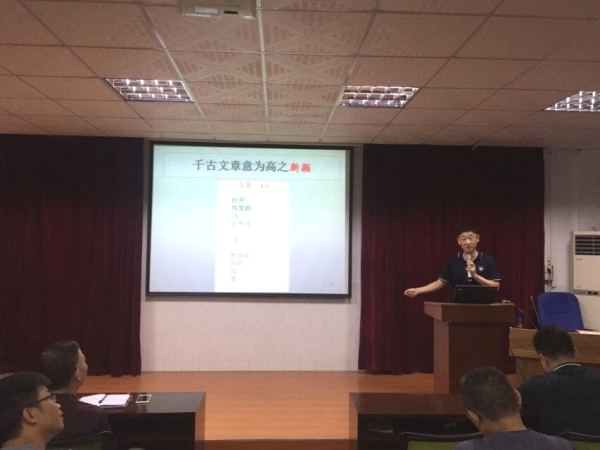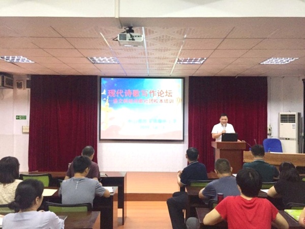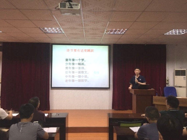 本次詩歌教學(xué)專題培訓(xùn)活動(dòng)由語文科組長(zhǎng)曹石生老師主持,全體語文教師、吳偉標(biāo)校長(zhǎng)、分管教學(xué)的程玉林副校長(zhǎng)和教學(xué)行政參加了此次交流活動(dòng)。