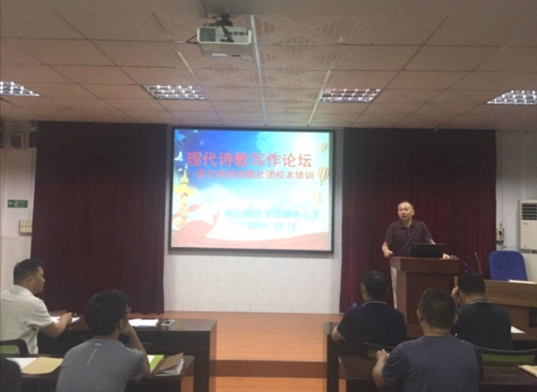 活動(dòng)主要由董志宏主任進(jìn)行“現(xiàn)代詩歌寫作入門”的專題講座。董志宏主任首先對(duì)詩界中各類“詩”的生動(dòng)有趣的故事區(qū)分了現(xiàn)代詩、打油詩和順口溜,參與活動(dòng)的老師們被董主任幽默風(fēng)趣的語言所吸引,并頻頻點(diǎn)頭會(huì)意;接著董主任分別從情感共鳴、音樂節(jié)律、字句凝煉等方面講解詩歌的詩情畫意的特點(diǎn),讓大家基本上了解詩歌與散文、現(xiàn)代詩與古典詩的各自區(qū)分點(diǎn)。欣賞詩歌不容易,但下筆創(chuàng)傷詩歌更是難主加難,董志宏主任針對(duì)這一情況,從散文入手,把散文進(jìn)行斷句,再根據(jù)詩的情感進(jìn)行凝煉語言,一步步把一段普通的散文式描寫,打磨、加工、凝煉成一首詩,不知不覺中把大家?guī)氲皆姼杳烂钆c創(chuàng)意之中。