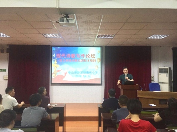 現(xiàn)代詩歌教學(xué)是語文教學(xué)的一個(gè)難點(diǎn)。語文教師在實(shí)際詩歌教學(xué)中也往往會(huì)是“未覺池塘春草夢(mèng),階前梧葉已秋聲?!?為了加強(qiáng)語文教師對(duì)現(xiàn)代詩歌的教學(xué)賞析與教學(xué)駕馭能力,中山沙溪康樂小學(xué)近期請(qǐng)來中學(xué)語文高級(jí)教師董志宏主任開展了現(xiàn)代詩歌教學(xué)專題培訓(xùn)活動(dòng)。