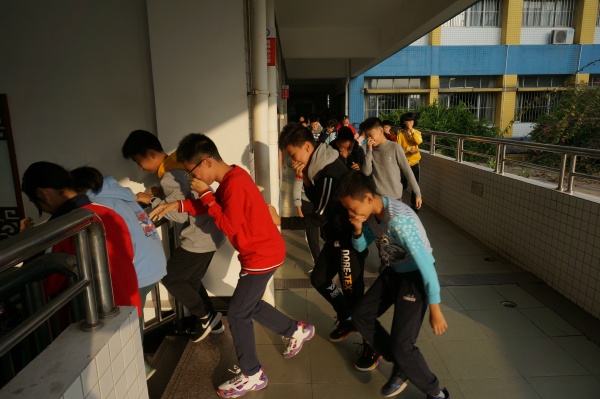 上午8點(diǎn)10分左右,一陣急促的警報(bào)聲響起,老師們迅速到達(dá)指定崗位,不斷提醒學(xué)生“不要慌”、“不要急”,各班同學(xué)在老師的指導(dǎo)下用濕毛巾等捂住口鼻,彎著腰,緊張而有序地按照指定路線撤離到安全區(qū)域。歷時(shí)不到2分鐘,全校師生全部安全地撤離到籃球場(chǎng),各班主任清點(diǎn)人數(shù)后,向疏散組組長(zhǎng)報(bào)告。疏散組組長(zhǎng)將集合情況及時(shí)匯總后向黃金奇校長(zhǎng)報(bào)告。