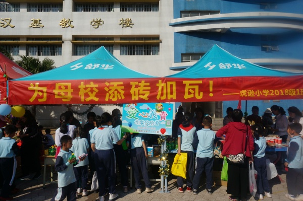 弘揚博愛,慈善為懷,行善積福是沙溪人的優(yōu)良傳統(tǒng),也是中華民族傳統(tǒng)美德的重要體現(xiàn)。一年一度的12·8慈善活動如期而至,中山市沙溪鎮(zhèn)虎遜小學(xué)為了傳承沙溪人優(yōu)良傳統(tǒng),營造校園隆都慈善文化氛圍,培養(yǎng)學(xué)生從小樹立樂善好施、樂于奉獻(xiàn)的良好品質(zhì),鍛煉他們的社會實踐能力,為沙溪教育事業(yè)添磚加瓦。2019年11月22日下午,虎遜小學(xué)于學(xué)?;@球廣場舉行了主題為“獻(xiàn)愛心、行善舉,為沙溪教育事業(yè)齊出力”的12·8慈善籌款活動。