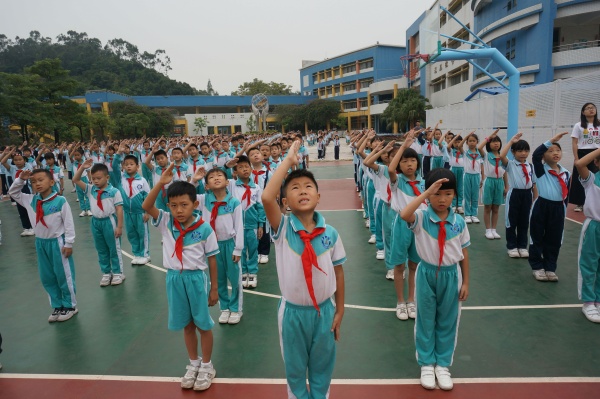 為積極響應(yīng)中山市教研室關(guān)于開展中小學(xué)“愛國(guó)”德育主題班(隊(duì)團(tuán))課教學(xué)活動(dòng)的號(hào)召,中山市沙溪鎮(zhèn)虎遜小學(xué)四(2)中隊(duì)于2019年10月24日下午開展了以“社會(huì)主義核心價(jià)值觀”之“愛國(guó)”——學(xué)榜樣,愛祖國(guó)為主題的隊(duì)課。在何溥彥輔導(dǎo)員的指導(dǎo)下,四(2)中隊(duì)的隊(duì)員們分小組籌劃了這次的中隊(duì)活動(dòng)。當(dāng)天下午,黃金奇校長(zhǎng)還召集全校的青年輔導(dǎo)員來參加了此次四(2)中隊(duì)的隊(duì)活動(dòng)。