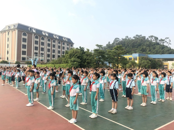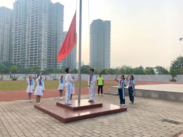10月21日上午,迎著晨曦,全體師生聚集在學(xué)?;@球場開展周一升旗活動(dòng)。隨著莊嚴(yán)肅穆的國歌聲響起,全體同學(xué)敬禮,注視著鮮艷的五星紅旗冉冉上升,心中激蕩著對(duì)祖國的崇敬與熱愛之情。接著四(4)班進(jìn)行主題為“無規(guī)矩不誠方圓”的國旗下講話活動(dòng)。
