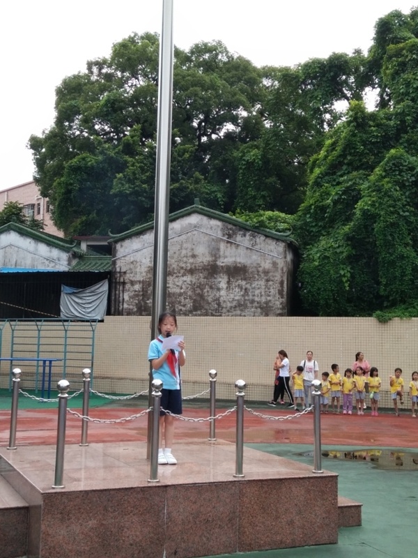 在雄壯的國歌聲中,全體師生仰望著鮮艷的五星紅旗冉冉升起。五(2)班學(xué)生代表黃嘉靜同學(xué)進行了國旗下講話。首先,黃同學(xué)介紹了端午節(jié)是我國古老的傳統(tǒng)節(jié)日,有著悠久的歷史文化背景。接著,她講述古時楚國人因舍不得賢臣屈原投江死去,紛紛劃船追趕打撈。之后每年的農(nóng)歷五月五日都會以劃龍舟的方式來紀念愛國詩人屈原,表達人們對屈原同情和崇敬之情,賦予了端午節(jié)濃濃的愛國情愫和民族情結(jié)。最后,她還提醒同學(xué)們屈原因為熱愛祖國、關(guān)心百姓疾苦而受到人們的愛戴,當我們津津有味地吃棕子、觀看賽龍舟時,不要忘記2000多年前那位愛國大詩人—屈原。