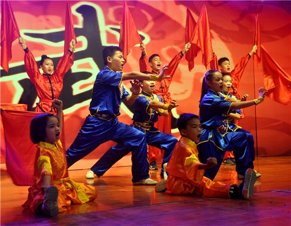 一首唯美動(dòng)聽的古箏合奏《彩云追月》震撼開場(chǎng)。學(xué)生精湛的琴技博得臺(tái)下陣陣熱烈的掌聲。學(xué)校吉他社團(tuán)帶來的歌曲《你笑起來真好看》和架子鼓社團(tuán)帶來的《爸爸去哪了》,再次掀起一番熱潮。六(2)班帶來的詩朗誦《我驕傲,我是中國人》,讓作為中國人的我們感動(dòng)不已,激動(dòng)的心情久久不能平復(fù)。孩子們深情的朗誦深深地感動(dòng)著臺(tái)下的每一位觀眾。五(1)班的孩子、家長、老師群策群力,上演了一場(chǎng)創(chuàng)意時(shí)裝秀,靈巧的雙手制作了許多別具一格的時(shí)裝,穿在孩子們身上充分張揚(yáng)個(gè)性、盡情釋放美麗。獲得臺(tái)下一陣又一陣的掌聲和歡笑。帶給觀眾無比的驚喜。踏著幸福的腳步,五(2)班同學(xué)且歌且誦,帶來的詩樂舞誦《少年中國說》聲聲深情,句句動(dòng)聽,動(dòng)作優(yōu)美,體現(xiàn)了中國少年意氣風(fēng)發(fā)、奮發(fā)向上的精神風(fēng)貌。中國夢(mèng),孩子們的夢(mèng),未來的夢(mèng),我是中國小夢(mèng)娃,人見人愛的小夢(mèng)娃,人小志氣大的二(2)班孩子帶來的舞蹈《小夢(mèng)娃》將晚會(huì)再次推向高潮。觀眾忍不住為孩子們可愛的表情和整齊的動(dòng)作鼓掌。音樂,是一串跳躍的音符,是一種快樂的心情,是一個(gè)夢(mèng)想的表達(dá),四(1)班覃雅媛同學(xué)和肖璟雯同學(xué)給大家?guī)淼母璋槲琛蹲蠲赖墓狻罚鹈赖穆曇?,暖人的笑容,?yōu)美的舞姿讓今晚的演出更加動(dòng)人。三(1)班的孩子帶來的舞蹈《向夢(mèng)想出發(fā)》讓我們感受到新一代少先隊(duì)員們的朝氣蓬勃,讓我們相信只要心中有夢(mèng),并朝著夢(mèng)想去追求,就一定會(huì)成功!夢(mèng)想終究會(huì)實(shí)現(xiàn)。中華武術(shù),博大精深,歷史悠久,在華夏大地上延綿數(shù)千年。中華武術(shù)具有豐富的內(nèi)容和深邃的文化底蘊(yùn)。我們學(xué)校武術(shù)社團(tuán)的孩子帶來的《武韻》作為壓軸節(jié)目再一次把晚會(huì)推向高潮。掌聲、歡呼聲和贊美聲響徹整個(gè)禮堂。