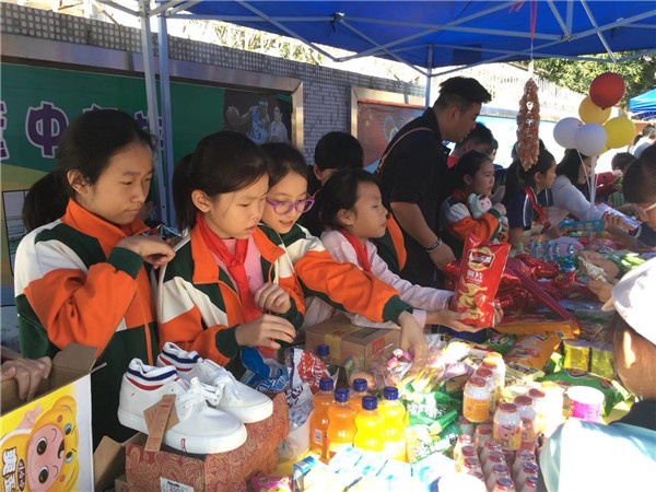 活動第二階段進(jìn)行物品義捐,并在11月29日下午開展了“慈善促教育,仁愛滿校園”慈善義賣活動。義賣現(xiàn)場,學(xué)生、老師、家長早早布置好攤位,桌上擺滿了各種各樣的義捐物品?;顒娱_始后,大家潮涌般向各義賣點(diǎn)選購自己喜歡的物品。各班的銷售能手,各出奇招、賣力十足,有的穿上卡通服、有的扮演唐曾師徒歡快地叫賣著,場面十分熱鬧。二(2)班、一(1)班、一(2)班等特別受歡迎,早早銷售一空。