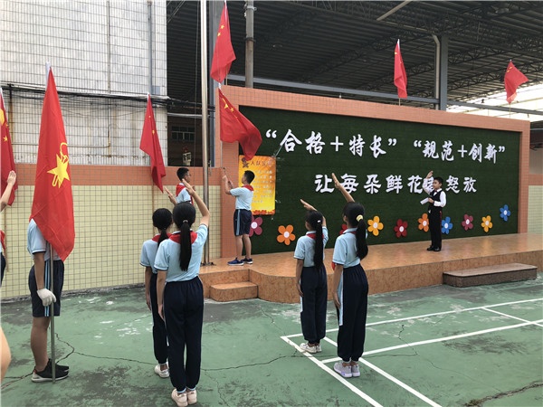 活動(dòng)中全體少先隊(duì)員面向隊(duì)旗做到“四個(gè)一”:少先隊(duì)員敬一個(gè)隊(duì)禮,唱一次隊(duì)歌,重溫一次誓詞,莊嚴(yán)呼號(hào)一次。通過(guò)重溫中國(guó)少年先鋒隊(duì)標(biāo)志禮儀,引導(dǎo)少先隊(duì)員聽(tīng)黨話、跟黨走,用實(shí)際行動(dòng)把紅色基因一代代傳下去,增強(qiáng)少先隊(duì)員光榮感。