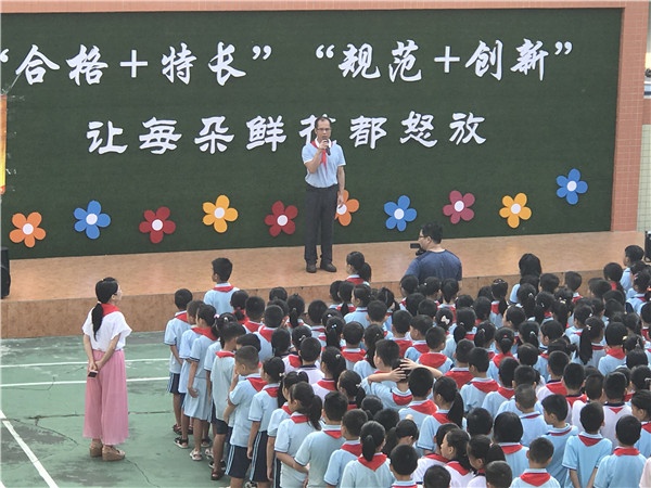 活動(dòng)在中國(guó)少年先鋒隊(duì)隊(duì)歌中拉開(kāi)帷幕,學(xué)校少工委主任吳發(fā)志給予全校少先隊(duì)員寄語(yǔ)和勉勵(lì),他希望隊(duì)員們要堅(jiān)定理想、崇德向善、知行合一,謹(jǐn)記校訓(xùn)“仁毅勤誠(chéng)”,爭(zhēng)做“人格自尊”、“學(xué)習(xí)自主”、“生活自理”、“行為自律”的新時(shí)代好隊(duì)員。
