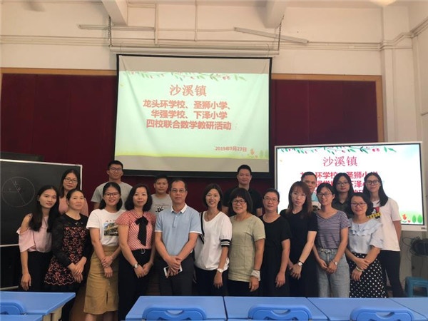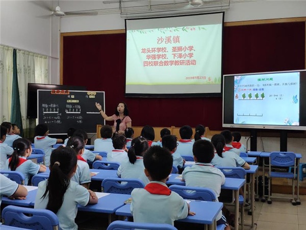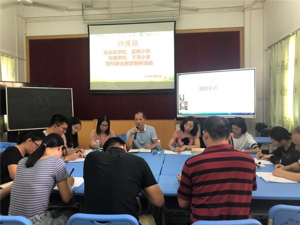 為了提高數(shù)學(xué)教學(xué)質(zhì)量,了解各學(xué)校的教學(xué)手段與方法,促進(jìn)學(xué)校之間教師們的學(xué)習(xí)交流。2019年9月27日,中山市沙溪鎮(zhèn)龍頭環(huán)學(xué)校、圣獅小學(xué)、華強(qiáng)學(xué)校以及下澤小學(xué)四校聯(lián)合在龍頭環(huán)學(xué)校電教室開展了數(shù)學(xué)教研活動。本次活動主要包括:龍頭環(huán)學(xué)校的黃淑娟老師執(zhí)教《植樹問題》和龍頭環(huán)學(xué)校的鄭君時老師執(zhí)教《圓的認(rèn)識》兩節(jié)分享課、四校關(guān)于數(shù)學(xué)教學(xué)問題進(jìn)行研討。