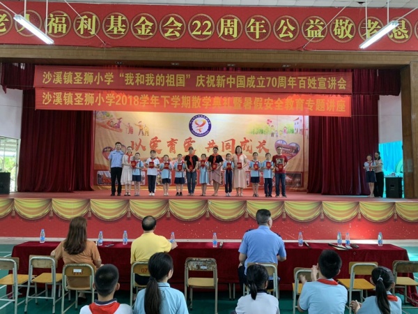 為了帶領(lǐng)師生共同回顧學(xué)期工作,及時(shí)表彰各級(jí)評(píng)選中取得好成績(jī)的師生和班級(jí),指導(dǎo)學(xué)生合理安排假期的學(xué)習(xí)和生活,渡過一個(gè)愉快、安全而有意義的假期,7月5日上午,圣獅小學(xué)全體師生在學(xué)校禮堂舉行散學(xué)典禮,參加散學(xué)禮的還有圣獅村部分干部、交警、家長(zhǎng)代表。