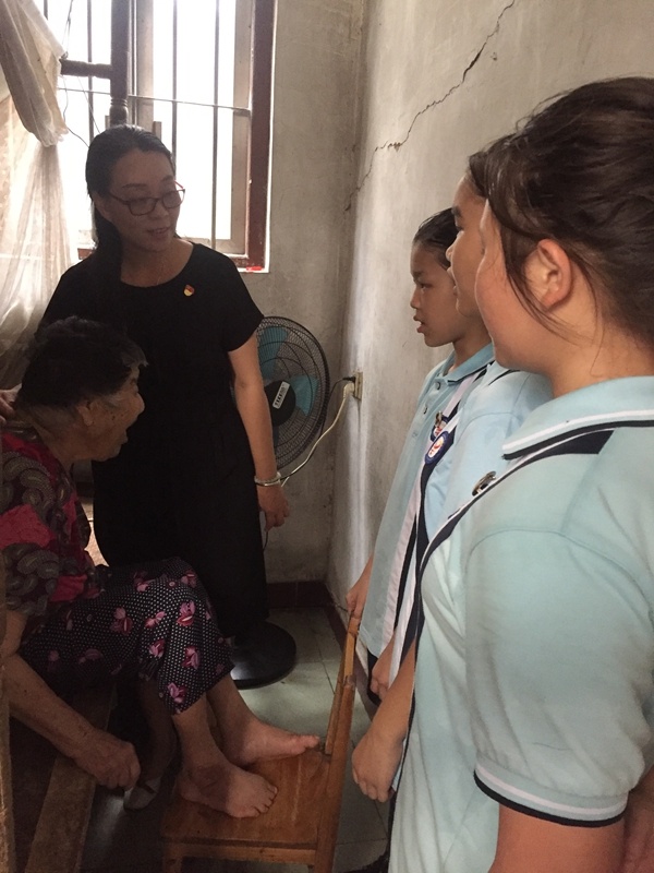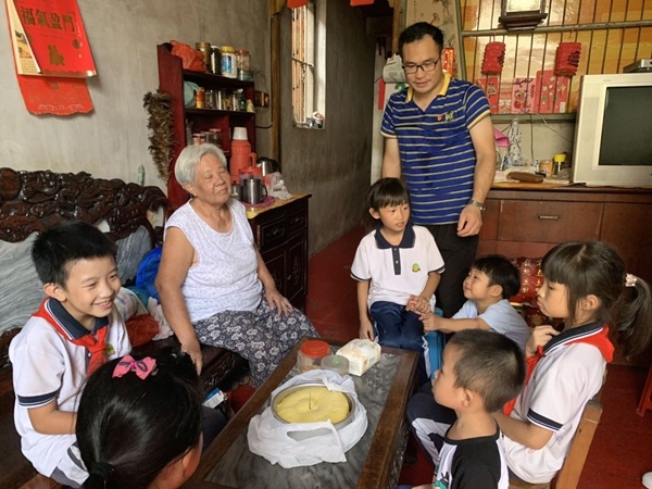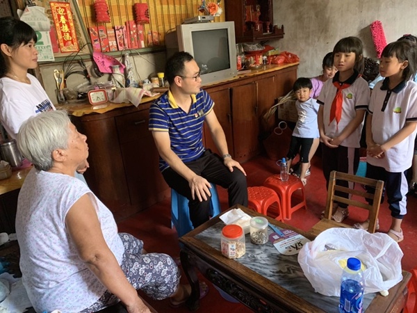 另一組探望隊伍中,劉婆婆見到師生們的到來,滿心歡喜開門來迎接。黃淑華同志細心詢問著劉婆婆的日常生活情況,發(fā)現(xiàn)劉婆婆腿腳行動不便,仔細一看,才知道劉婆婆給開水燙傷了,沒有用藥水處理,便立馬聯(lián)系村委會,轉聯(lián)系衛(wèi)生站跟進幫劉婆婆處理傷口。黃淑華同志和親子家長還注意到劉婆婆的茶罐已空,床上生活用品非常簡陋陳舊,便一邊安慰劉婆婆,一邊登記,準備下次為劉婆婆添置一些生活用品。臨近探望結束,劉婆婆依依不舍地站在門口揮手跟探望隊伍告別。