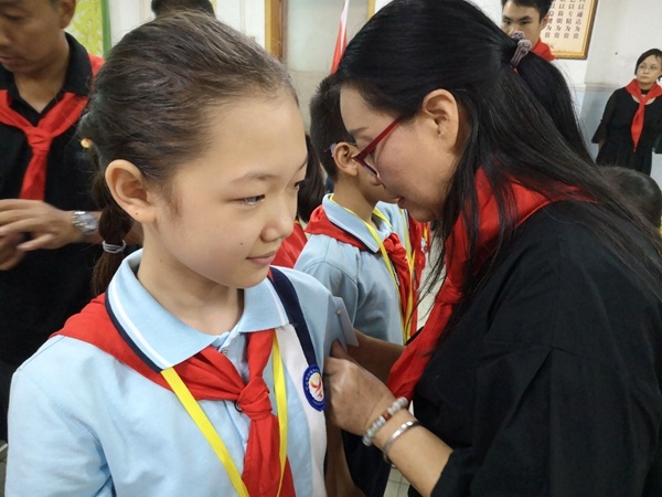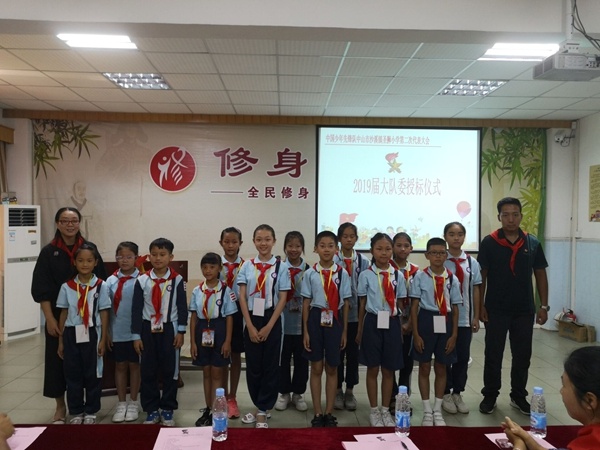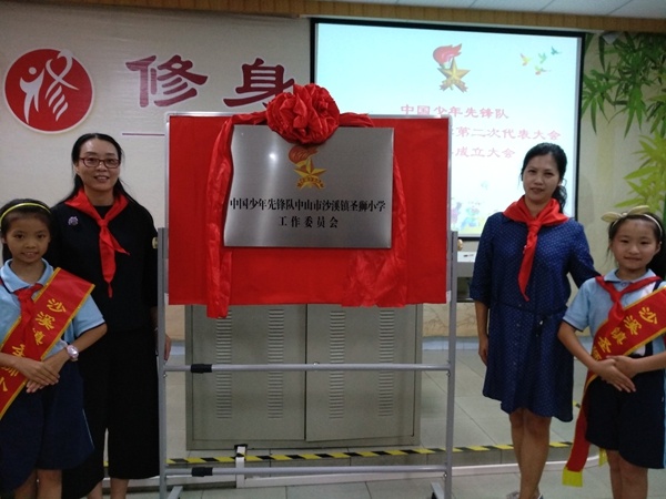 接著,大會審議通過了新一屆大隊委名單,并為新一屆大隊委授臂章。大會審議還通過了第一屆學(xué)校少工委委員名單,阮秀迎老師、黃慧芳校長和隊員代表為學(xué)校少工委成立揭牌,并為第一屆學(xué)校少工委委員頒發(fā)聘書,中山市沙溪鎮(zhèn)圣獅小學(xué)第一屆少先隊工作委員會宣告成立!
