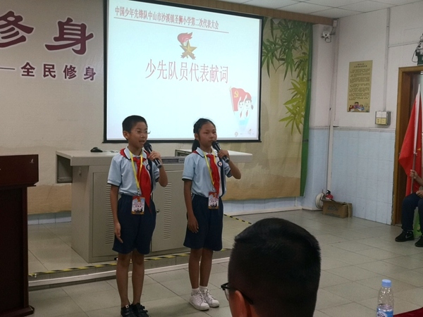 中國少年先鋒隊中山市沙溪鎮(zhèn)圣獅小學(xué)第二次代表大會于6月14日下午順利召開。沙溪鎮(zhèn)少工委總輔導(dǎo)員阮秀迎、圣獅村團(tuán)委書記陳達(dá)榮、圣獅村團(tuán)委副書記阮嘉誠、圣獅小學(xué)黨支部書記黃慧芳、學(xué)校行政代表、家委會代表、全體中隊輔導(dǎo)員及少先隊員代表等共72人參加了會議。