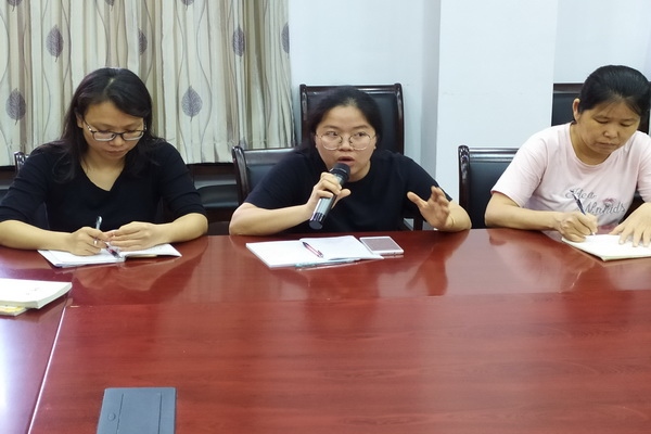 活動中,語文科組率先為大家進行了科組教研展示,對王艷榮老師執(zhí)教的《詠柳》進行評課議課。王艷榮老師首先進行了細致的說課與反思,然后主評老師陳向紅、李娟,以及其他語文教師先后從不同方面、角度給予了細致地評議。其間,古詩吟誦、情境教學的運用引起了大家精彩的思想碰撞。