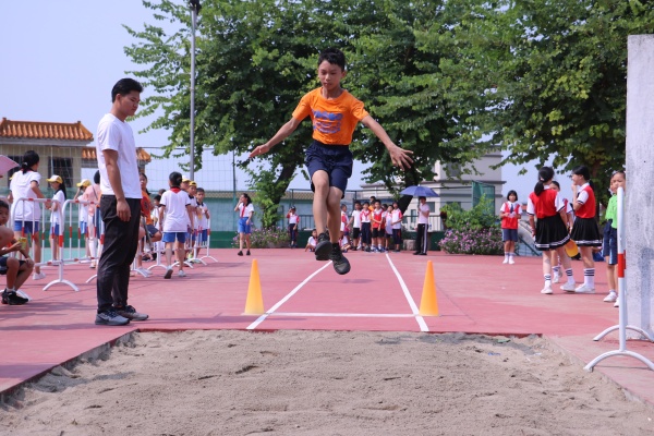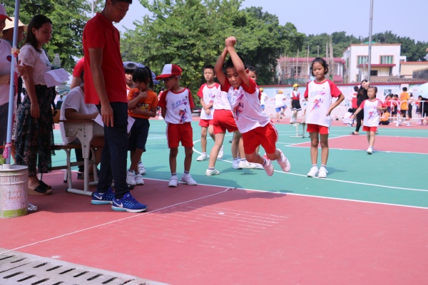 本屆運動會分為三個組別進行,分別是甲組(五、六年級)、乙組(三、四年級)和丙組(一、二年級)。項目有:男女50米跑、男女跳遠(甲、乙組跳遠,丙組立定跳遠)、一分鐘跳大繩、50米迎面接力跑、拔河比賽。在各項比賽中,參賽同學(xué)們秉承著友誼第一、比賽第二的精神,踴躍參與比賽。隨著裁判員一聲令下,運動會各項比賽有序地開始了,校園頓時沸騰了起來。運動場上的運動員們正激烈地比賽著,他們揮灑汗水,奮力拼搏沖向終點,一旁的同學(xué)們都熱情地給他們加油助威,各種加油聲、喝彩聲此起彼伏,不絕于耳。上午分別進行了男女50米的預(yù)賽、一分鐘跳大繩比賽和跳遠比賽,同學(xué)們都積極參與,各放異彩。下午的50米決賽和50米迎面接力,同學(xué)們健步如飛、你追我趕,場面更是激動人心、扣人心弦。最后的拔河比賽則更為精彩,出現(xiàn)低年級逆襲高年級的局面,淋漓盡致地發(fā)揚了頑強拼搏、堅忍不拔、團結(jié)進取的體育精神。