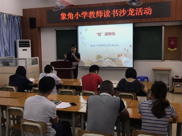 讀一本好書,等于和一個高尚的人在談話。在“悅讀快樂”全民讀書月活動中,為營造濃郁的讀書氛圍,以讀書促進(jìn)教師專業(yè)成長,進(jìn)一步推進(jìn)學(xué)校書香校園建設(shè),象角小學(xué)于5月30日下午舉行了“悅讀快樂”教師讀書沙龍活動?;顒右笕w教師閱讀相關(guān)書籍,寫好心得體會,現(xiàn)場抽簽確定發(fā)言人,并設(shè)最佳發(fā)言獎、最佳氣質(zhì)獎、最佳臺風(fēng)獎。