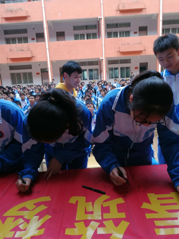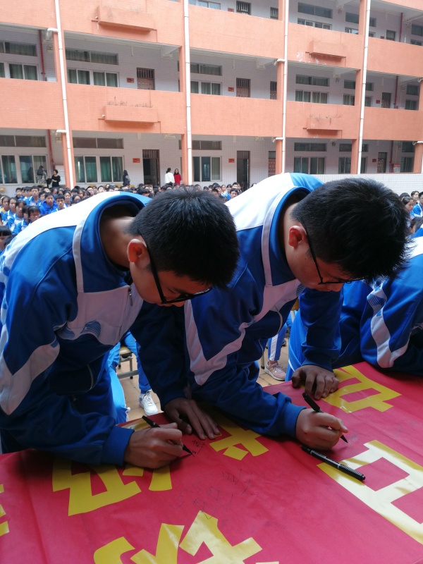 宣誓結(jié)束后,各班派代表進行了簡短隆重的“百人誓詞簽名”活動。各班的同學(xué)代表表情嚴肅認真,在誓詞橫幅上簽下了自己的名字,這不僅是一次簽名更是沙中學(xué)子對學(xué)校、對自己、對中考的一份莊嚴承諾!