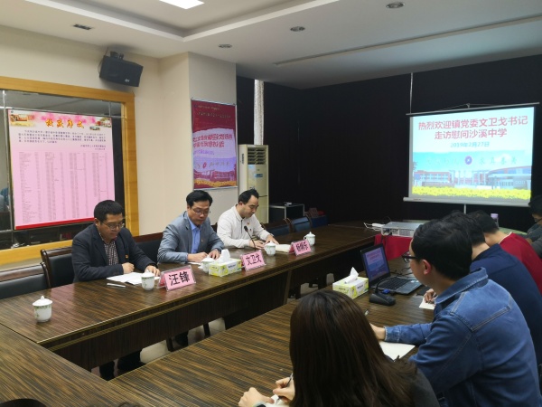 文衛(wèi)戈書記在聽取匯報后做了總結發(fā)言,表示了對沙溪中學各項工作的肯定與滿意。對于提出的困難和希望,他指出,政府對教育是非常重視的,將竭盡全力解決各個問題,再困難也要保證學校的權益和教師待遇,也感謝沙中老師對學校及沙溪鎮(zhèn)教育的貢獻。同時也提出對學校和老師的期望,希望加強教室隊伍建設,加強學生安全,堅決掃黑除惡,繼續(xù)發(fā)展沙中的特色教育。