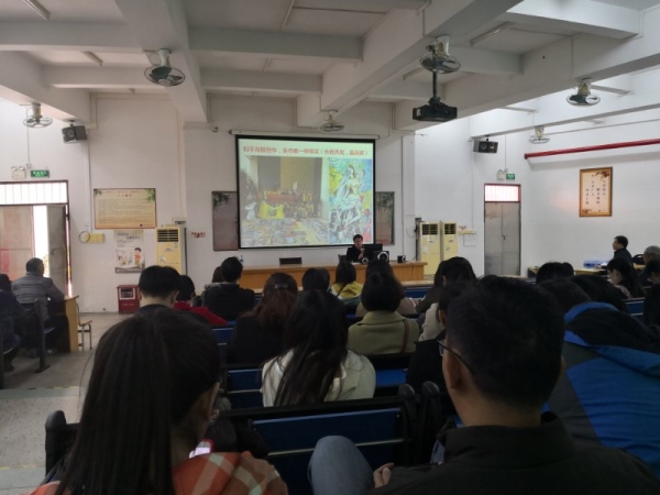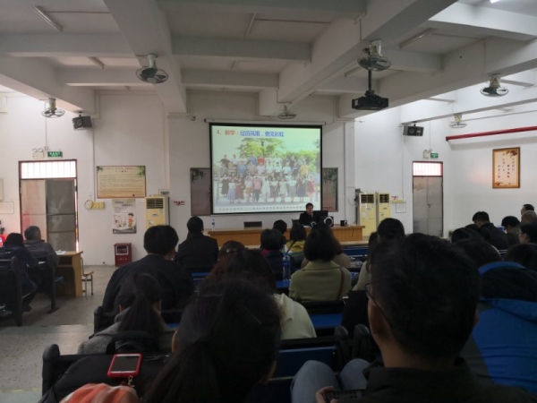 首先,華校長(zhǎng)以“厲害了,我們的2018”為題開(kāi)啟了年度總結(jié)的第一篇章。2018年,沙中的影視課程研究可謂碩果累累: 2018年1月或教育部頒發(fā)的“全國(guó)優(yōu)秀德育工作案例”, 2018年6月影視黨建課程研究獲省教廳立項(xiàng),2018年8月《影視德育課程》入選北京教育出版社出版的專著《課程走向未來(lái)》。華校長(zhǎng)表示,沙中的影視德育課程不會(huì)止步于此,而將繼續(xù)走向更好的未來(lái)。隨后,華校長(zhǎng)用“鶴翔”、“鶴彩”、“鶴韻”、“鶴學(xué)”、“鶴師”五個(gè)詞分別總結(jié)了沙中體育、美術(shù)、音樂(lè)、教學(xué)質(zhì)量、教師成長(zhǎng)等各方面的成就,展示了沙溪中學(xué)“鶴文化”特色教育的教學(xué)成果,其中特別多展示了去年取得優(yōu)異成績(jī)的英語(yǔ)科組教學(xué)上的 “神奇魔法”,使全體教師在總結(jié)中進(jìn)一步提升。