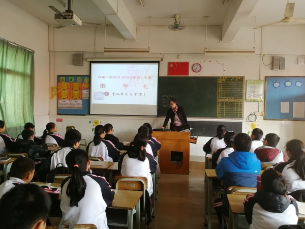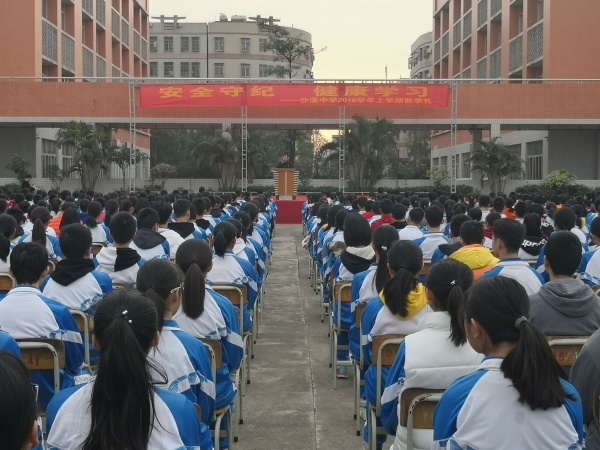 1月18日,中山市沙溪初級(jí)中學(xué)舉行了2018學(xué)年上學(xué)期散學(xué)禮。本次典禮分作兩個(gè)部分,第一部分全體師生在升旗禮廣場(chǎng)舉行,第二部分分班由班主任主持。