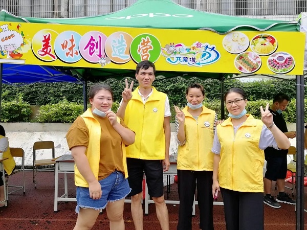 為了確保美食的安全衛(wèi)生可口,學校嚴格把關食材采購,專人負責。美食當天早上制作,保障孩子們的健康成長。而我們慣常在講臺上“指點江山”的老師們則化身為攝影師隨時隨地把孩子們最純正的笑臉記錄下來。此外,校園中還隨處可見的一群身穿黃馬甲“最可愛的人”——家長義工,他們維持秩序,保潔場地,保證了活動有序、安全、整潔地開展。
