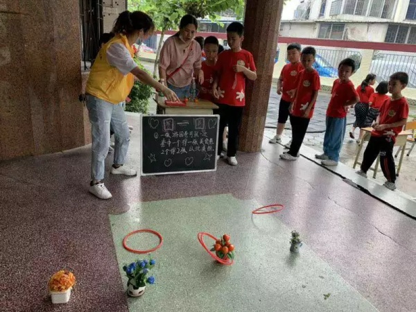 5月31日,中山市申明亭學校的校園里充滿了歡聲笑語,孩子們臉上洋溢著燦爛的笑容,沉浸在歡樂的海洋中。上午9點,美食游園活動開始了!校園頓時沸騰起來。昔日書聲朗朗的校園,變成了一個處處有樂趣、處處有驚喜的游樂園。動感保齡球、袋鼠跳、套套圈、沙畫DIY、成語接口、巧舌如簧繞口令……一個個“小景區(qū)”充滿了驚喜,充滿了童趣。既活潑、健康,又新穎有趣的游戲,既訓練了體能,又考驗了智力,還挑戰(zhàn)了心理,受到孩子們的熱烈歡迎。