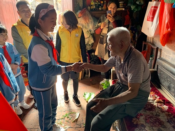 在慰問活動中,師生和志愿者們?yōu)槔先怂蜕狭舜竺住⒒ㄉ?、長壽面等,還給老人家做清潔,收拾堆放的雜物,擦窗,之后大家陪老人家聊天,聽老人回憶過往的日子,有說有笑,其樂融融,仿佛一家人一樣。老人的家里充滿歡快的笑聲。老人對隊(duì)員們也是贊不絕口,心懷感激,大家一起度過了快樂而又溫馨的一天。最后,隊(duì)員們還給老人家送上了自己誠摯的祝福和深深的擁抱,使老人家感受到了親人般的溫暖。