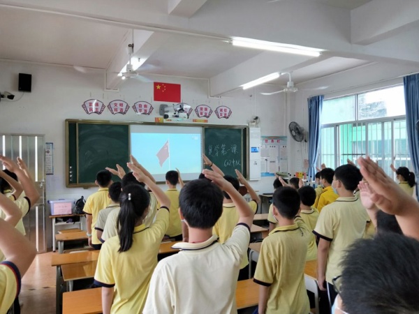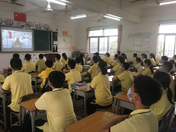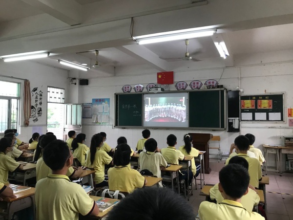 今天的第一節(jié)課是班會(huì)課,主題是觀看市教育和體育局制作的《復(fù)學(xué)第一課》。開篇的畫面是奏國(guó)歌升國(guó)旗,同學(xué)們非常自覺的在座位上肅立,面對(duì)屏幕,行隊(duì)禮,宏亮的國(guó)歌聲在教室里回響。