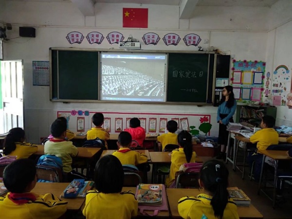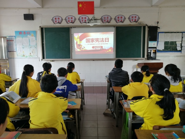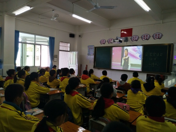 憲法是國家的根本法,是治國安邦的總章程。憲法教育是法治教育的首要內容,也是學校開展法制教育的根基,是每個學生的必修課。12月4日的第一節(jié)課上,在學校的統(tǒng)一安排布置下,華強學校的各班班主任組織學生朗讀了憲法中的部分章節(jié)。觀看本校制作的憲法PPT課件,同學們嚴肅地凝視著大屏幕,邊朗讀邊進行理解、記憶,朗朗的晨讀聲回蕩在華強學校的校園里,使人肅穆。上午9:00時,全校38個班級共同觀看普法網(wǎng)上直播視頻,認真聆聽了里面每一位學生的精彩演講,全校學生受益匪淺。