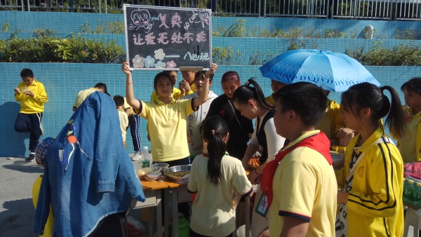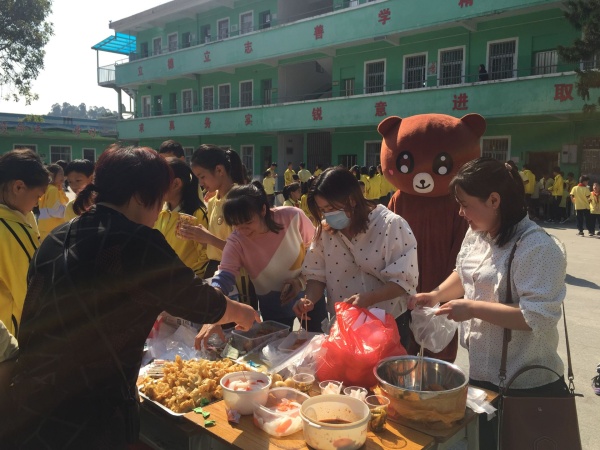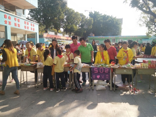 11月22日下午,華強(qiáng)學(xué)校內(nèi)操場人聲鼎沸,擠滿了學(xué)生和家長,原來是12.8義賣活動開始了。為了讓慈善文化深入孩子們的心里,學(xué)校積極動員家長,除了在班級進(jìn)行捐款活動外,還組織了深受同學(xué)們歡迎的義賣活動。各個班級的家長牽頭,帶領(lǐng)學(xué)生參與到慈善義賣中。有的孩子們將自己的玩具、二手書拿出來拍賣;有的孩子則自己制作美食出售;還有的學(xué)生現(xiàn)場DIY手工飾品,吸引力不少關(guān)注。家長們以愛之名,樂在其中,現(xiàn)場制作爆米花、糕點等,甚至還把“熊寶寶”請到現(xiàn)場拍照。