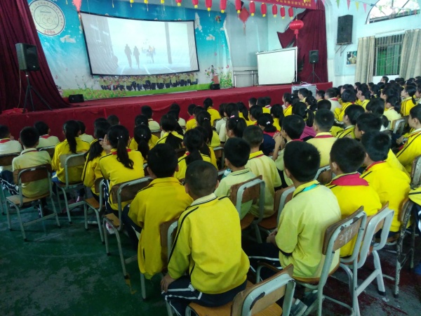 早餐后,在學(xué)校德育處的統(tǒng)一組織下,華強(qiáng)學(xué)校小學(xué)部高年級(jí)近500名師生,在學(xué)校大禮堂觀看了愛(ài)國(guó)主義電影《紅海行動(dòng)》。