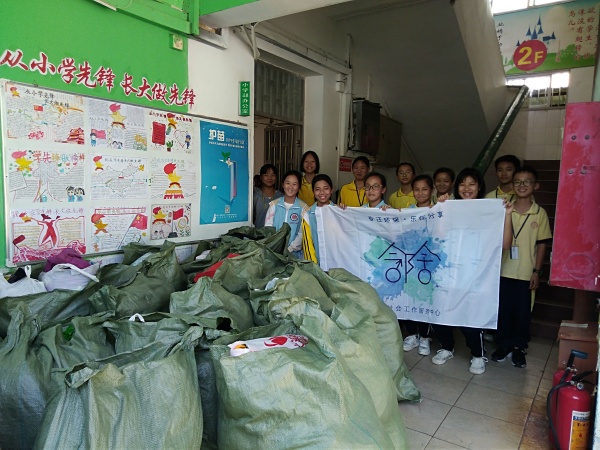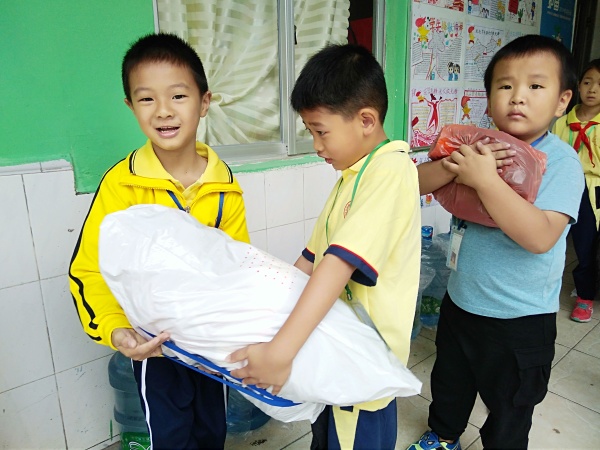 10月28日早上的升旗儀式,校長劉鍵向全體師生發(fā)出“情系山區(qū) 捐獻衣物”舊衣物捐贈活動的倡議。倡議活動結(jié)束后,全校師生積極參與,各中隊輔導員回到中隊再次發(fā)動隊員們進行舊衣物回收的倡議,請隊員們將用不著的舊的衣服、書包、鞋子、公仔和被單打包好,于29日早上一起帶到學校來進行“情系山區(qū) 捐獻衣物”“一件衣服,一份溫情”的舊衣服回收活動。這次的愛心捐贈活動也得到了家長們的大力支持,有的家長主動和老師聯(lián)系,把自己家里閑置的衣物全部捐贈出來;有的孩子小捐贈的衣物較多,家長就主動把衣物送到學校來……一個小小的舉動,匯聚成了濃濃的暖流。在短短的時間里,學校共收集到大量學生捐贈的衣物。 10月29日下午,在志愿者代表的協(xié)力幫忙下,學校把這批捐贈的物品交給鄰舍社會工作服務(wù)中心工作人員。