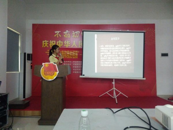 本次分享會(huì),沙溪中學(xué)以及溪角中學(xué)都派了學(xué)生代表前來(lái)參加。分享會(huì)開始之前,沙溪鎮(zhèn)團(tuán)委書記方君健叔叔致辭。方書記用自身切實(shí)感受呼吁我們要珍惜學(xué)生時(shí)代生活,鼓勵(lì)我們要多讀書,特別是要多誦讀經(jīng)典書籍。接下來(lái),分享會(huì)是在我校小學(xué)部學(xué)生代表詩(shī)朗誦表演“我和我的祖國(guó)”中徐徐拉開序幕。之后的分享活動(dòng),來(lái)自初中部三個(gè)學(xué)段的15位同學(xué)以飽滿的激情、生動(dòng)的語(yǔ)言以及借助圖文并茂的幻燈片跟大家分享了對(duì)自己喜愛(ài)書籍的讀書感悟、體會(huì),表達(dá)了讀書的無(wú)限樂(lè)趣。期中,來(lái)自801班的羅欣同學(xué)分享的《狼道》尤為吸引人,她聲情并茂地向大家講述了狼性文化的內(nèi)容及特征,呼吁大家學(xué)習(xí)狼道精神;705班楊理強(qiáng)同學(xué)的表現(xiàn)也贏得了觀眾的陣陣掌聲,他用自己特有的語(yǔ)言魅力以及豐富的肢體語(yǔ)言與大家分享了《老人與海》這個(gè)故事的簡(jiǎn)述以及讀后的感悟;703班鐘欣同學(xué)的《活著》以及901班曾雨歡同學(xué)的《少有人走的路》,這兩位同學(xué)用自己獨(dú)特的視角解讀了這兩本書的精彩部分?;顒?dòng)中,同學(xué)們有的娓娓道來(lái),有的熱情洋溢,所有的觀眾不時(shí)送上響亮的掌聲,有獎(jiǎng)問(wèn)答環(huán)節(jié)更是把整場(chǎng)活動(dòng)的氣氛推到了高潮,這環(huán)節(jié)切實(shí)考驗(yàn)了同學(xué)們的文學(xué)素養(yǎng)。