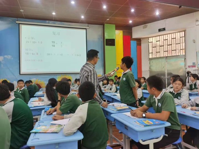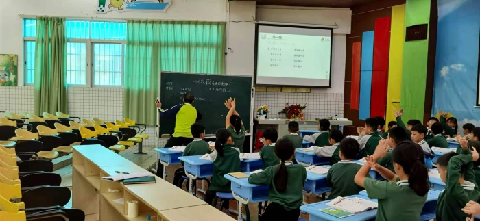 11月12日數(shù)學(xué)專場,梁海英副校長打沖鋒。她執(zhí)教二年級《7的乘法口訣》,以有趣的7塊七巧板為主線讓學(xué)生認(rèn)識7的乘法口訣,運用口訣,背誦口訣。學(xué)生在趣中學(xué),在趣中練。接著,邱繼發(fā)副校長展示的是六年級的《比的意義》;李健主任展示的是三年級的《多位數(shù)乘一位數(shù)》;阮雪華主任展示的是二年級的《解決問題》,他們的課或語言幽默風(fēng)趣,或內(nèi)容生動具體,或循循善誘,孩子們聽得津津有味,收獲豐富。