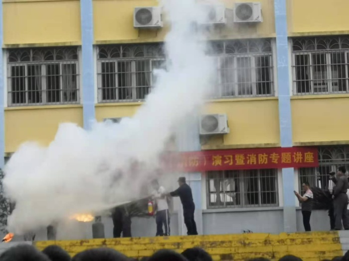11月13日下午4:40,德育處拉響警報,全校師生按照既定路線迅速到達操場,用時三分三十秒。師生到達操場后,神灣消防中隊的林警官就如何預(yù)防火災(zāi)、如何在火災(zāi)中應(yīng)急逃生、如何使用滅火器等知識向全體師生作了精彩而生動的解說。