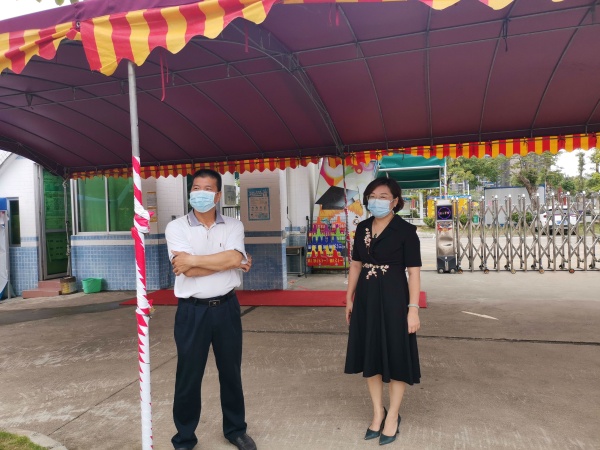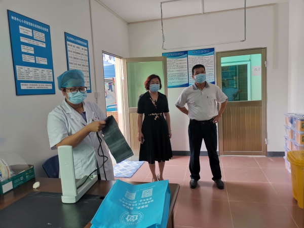 特殊的開學(xué)典禮后,神灣鎮(zhèn)人大主席李明生在譚瑞香校長的陪同下,參觀走訪了學(xué)校校醫(yī)室,查看防護(hù)物資的準(zhǔn)備情況,詢問檢查了學(xué)校應(yīng)急通道的完成情況,肯定了全校教職工為學(xué)生順利返校付出的努力。另一邊,神灣鎮(zhèn)衛(wèi)計局陳愛文同志親自抵達(dá)學(xué)生校車乘坐點的北門,在邱繼發(fā)副校長等人的陪同下,查看校車消毒清潔記錄表、詢問學(xué)生上下車體溫檢查的落實情況等,強(qiáng)調(diào)防疫防控期間也要常抓校車安全。為充分保障飯?zhí)霉芾砼c飲食安全,在李健主任的帶引陪同下,神灣鎮(zhèn)食監(jiān)所韓華彰所長一一查看了飯?zhí)霉ぷ魅藛T的健康證明材料,檢查了倉庫內(nèi)糧米、雞蛋等生活物資的儲存情況,強(qiáng)調(diào)學(xué)校后勤部一定要確保食材的新鮮與安全,做到后勤力量有保障、學(xué)生飲食重安全。