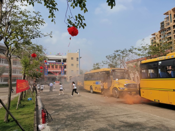 上午10點(diǎn)整,急促的警報(bào)聲打破了校園的寧靜,總指揮譚瑞香校長宣布演練正式開始,并向全校發(fā)布“掩住口鼻,彎腰前行,有序小跑”的疏散指令。話音剛落,只見各年級(jí)各班學(xué)生在班主任及各樓層值崗老師的組織帶領(lǐng)下,有序快速地經(jīng)由預(yù)定的撤離通道和路線到達(dá)了集合點(diǎn);在校車上的學(xué)生,有序地由校車的跟車人員帶領(lǐng)著沿疏散路線撤離。