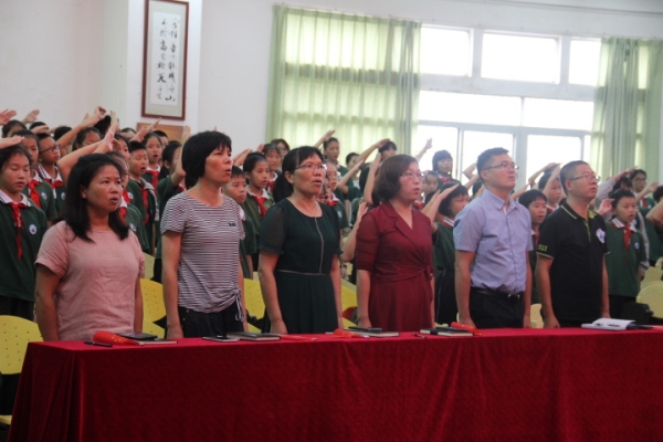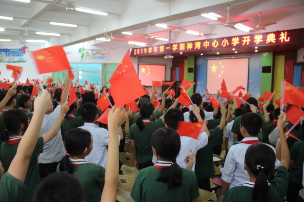 秋雨淅瀝,2019年9月2日上午9點(diǎn),在莊嚴(yán)的國(guó)歌聲中以及鮮艷的五星紅旗的映照下,神灣中心小學(xué)全體師生歡聚在多媒體室內(nèi),舉行了熱烈的秋季開學(xué)典禮,共同翻開新學(xué)年嶄新的第一頁。