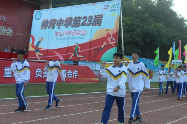 風輕云淡,冬日暖陽。2019年11月28日,神灣中學在田徑運動場舉辦第23屆學生田徑運動會。神灣中學全體師生參加運動會開幕式。