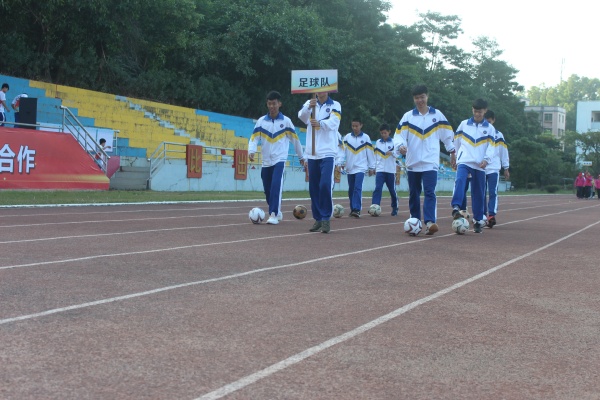 上午9:00,開幕式正式拉開帷幕,國旗方隊、彩旗方隊、鮮花方隊、足球方隊、裁判員方隊以及各班級方隊邁著矯健的步伐,高喊整齊的口號有序進場。