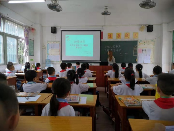 中國少先隊(duì)建隊(duì)日于1949年10月13日確立,2019年10月13日是第70個(gè)少年先鋒隊(duì)建隊(duì)日。2019年10月14日,神灣神舟學(xué)校開展了“10.13 少先隊(duì)建隊(duì)日”主題教育活動(dòng)。上午九時(shí)許,利用周一的晨會(huì)時(shí)間,全校師生在校操場舉行主題教育活動(dòng),全體隊(duì)員齊唱中國少年先鋒隊(duì)隊(duì)歌,了解隊(duì)史,重溫入隊(duì)誓詞。