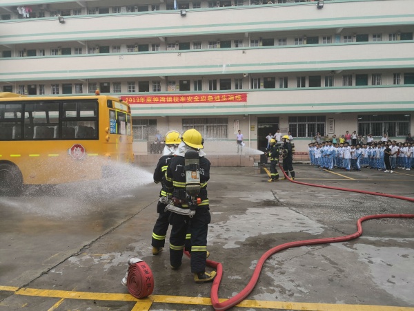 為了進(jìn)一步加強(qiáng)我鎮(zhèn)校車的安全管理,加強(qiáng)學(xué)生安全知識(shí)的宣傳和教育,提高乘車學(xué)生的安全意識(shí)和防范能力,維護(hù)學(xué)校正常的教學(xué)秩序和社會(huì)的穩(wěn)定。2019年6月13日上午,神灣鎮(zhèn)教育事務(wù)指導(dǎo)中心聯(lián)合神灣鎮(zhèn)交警大隊(duì)、神灣鎮(zhèn)交通分局、神灣醫(yī)院、神灣消防中隊(duì)等部門,在神舟學(xué)校舉行“2019神灣鎮(zhèn)校車安全應(yīng)急逃生演練”活動(dòng)。神灣鎮(zhèn)各中心小學(xué)、幼兒園校長、園長及分管安全的領(lǐng)導(dǎo)參加活動(dòng)?;顒?dòng)由神舟學(xué)校德育處韋德敏主任主持,神舟學(xué)校六、七年級(jí)700多人學(xué)生參加了演練。