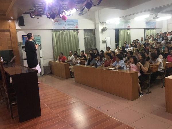 在講座開始之初,陳干事就學(xué)校的辦學(xué)領(lǐng)導(dǎo)理念和家庭教育的重要性做了一個(gè)簡(jiǎn)短介紹。其中就說(shuō)到人這一生當(dāng)中要接受三種教育,即家庭教育,學(xué)校教育和社會(huì)教育。而對(duì)一個(gè)孩子最重要的便是人生開始階段的家庭教育。正確的教育孩子,家長(zhǎng)需要形成正確的養(yǎng)育觀念,掌握切合的教育方法,合理利用教育資源。后面的活動(dòng)就由洪家歡老師主講,洪老師以本次《男女有別》的課題而展開。首先洪老師先就到場(chǎng)的家長(zhǎng)作為一個(gè)團(tuán)隊(duì)做了一個(gè)調(diào)研,在相關(guān)數(shù)據(jù)下羅老師針對(duì)參會(huì)家長(zhǎng)的情況通過(guò)一個(gè)個(gè)鮮明的案例,讓家長(zhǎng)通過(guò)實(shí)例認(rèn)識(shí)到家庭是孩子的第一學(xué)校,父母是孩子的第一任老師,家庭教育的好與壞將直接影響孩子的一生!洪老師還說(shuō)到:教育孩子要講究正確的方法 ,好的教育會(huì)讓孩子受益終生。現(xiàn)在很多父母對(duì)孩子期望值很高,又不知如何施教,有的把家庭教育搞的過(guò)于繁瑣復(fù)雜,教什么,怎樣教,很困惑,不得要領(lǐng),錯(cuò)誤的教育方式往往會(huì)適得其反。其實(shí),孩子能否接受家長(zhǎng)的教育,關(guān)鍵取決于孩子在內(nèi)心如何看待家長(zhǎng),如果孩子根本就厭煩,根本就不想接受家長(zhǎng)的引導(dǎo),這種情況下越努力教育就越?jīng)]用!